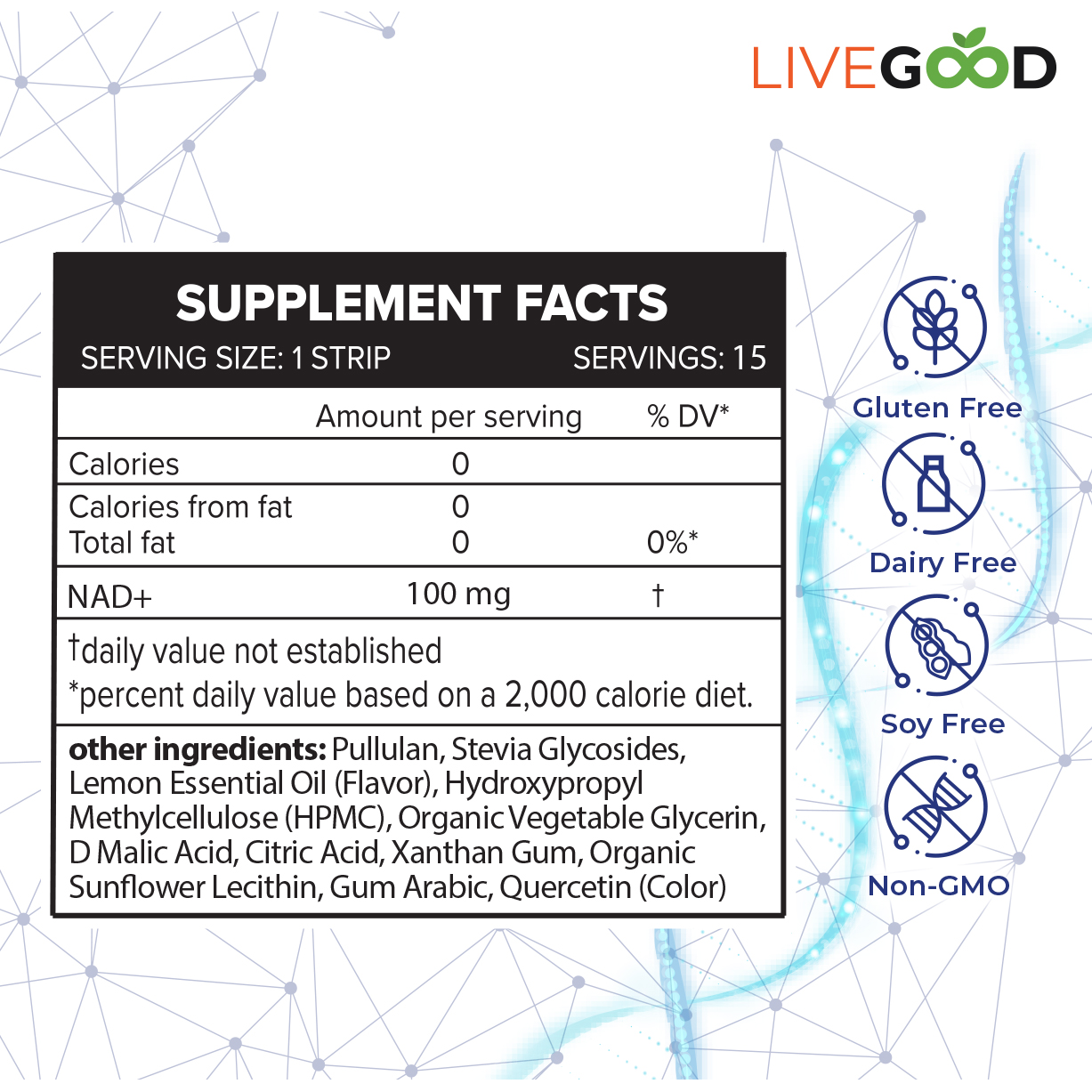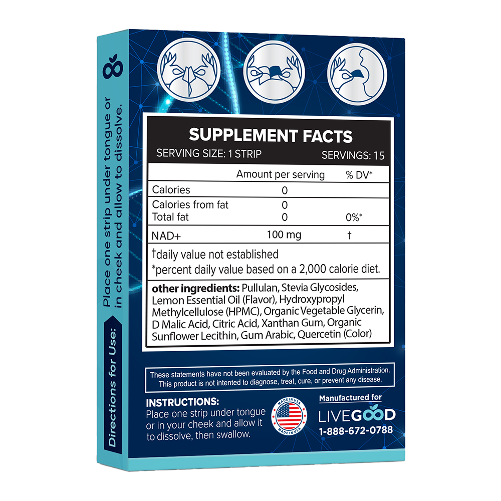 LiveGood NAD+ Dissolvable Strips are designed to help support healthy NAD+ levels, so your cells can function at their best.